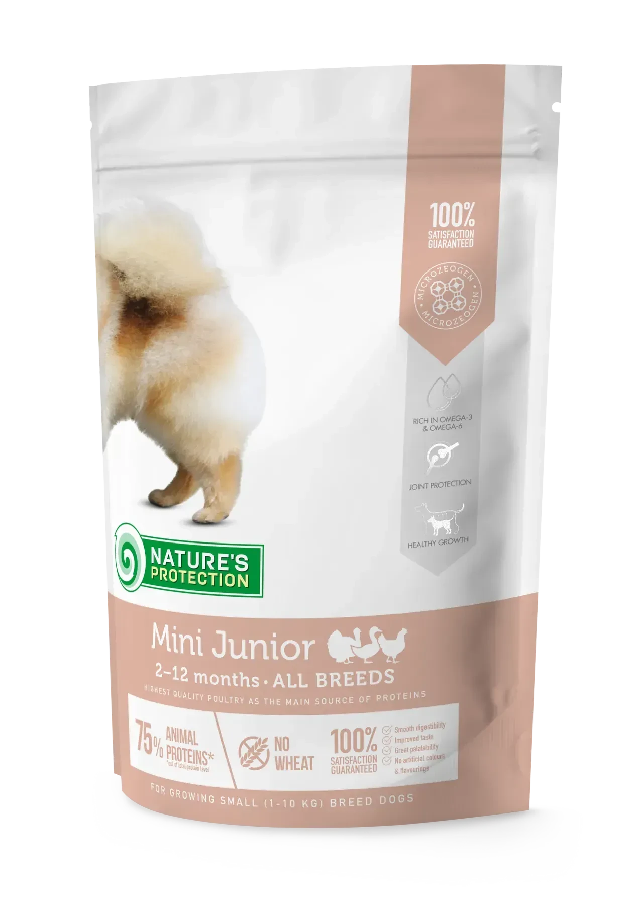 MiniJuniorSmallBreeds — сухой супер-премиум корм из 42% мяса птицы для щенков малых пород (2–12 месяцев). Сочное мясо придает насыщенный вкус и легко усваиваемый белок, а лососевое масло и семена льна поставляют Омега-3/6 для быстрого развития мозга и блестящей шерсти. Уникальный вулканический минерал MicroZeoGen очищает организм от токсинов и усиливает усвоение питательных веществ. Витамины A, D₃, E вместе с микроэлементами поддерживают сильный иммунитет, а L-триптофан, таурин и DL-метионин заботятся о здоровье сердца, печени и остром зрении.