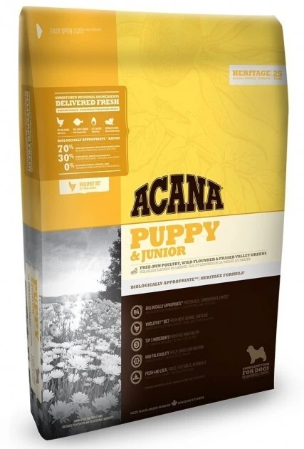 Именно поэтому корм ACANA Puppy & Junior переполнен мясом выращенных на "свободном выгуле" цыплят, цельными яйцами из местных ферм, камбалой, выловленной у острова Северный Ванкувер. Все эти ингредиенты доставляются на фабрику свежими каждый день для максимального сохранения вкуса и пищевой ценности.