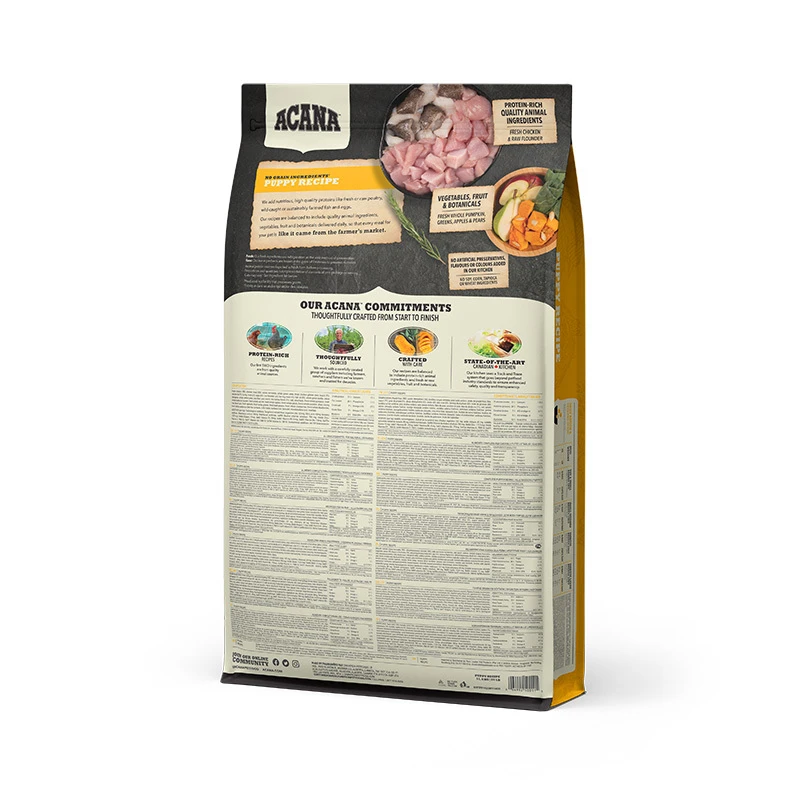 Когда это касается корма ACANA, каждый ингредиент имеет значение. Именно поэтому рецептура ACANA Puppy Recipe создается с заботой и мыслью о растущих щенках всех пород. Рецептура Акана Паппи Ресипе на 70% переполнена качественными мясными ингредиентами, такими как мясо канадских цыплят и сырой камбалы и на 30% сбалансирована фруктами, овощами и травами.