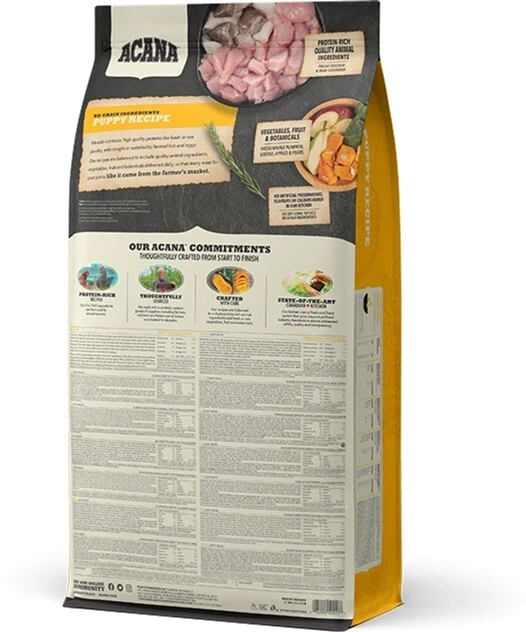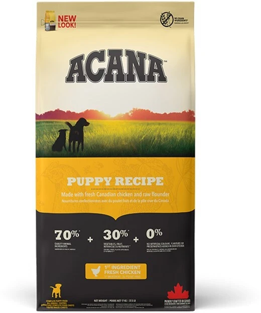 Когда это касается корма ACANA, каждый ингредиент имеет значение. Именно поэтому рецептура ACANA Puppy Recipe создается с заботой и мыслью о растущих щенках всех пород. Рецептура Акана Паппи Ресипе на 70% переполнена качественными мясными ингредиентами, такими как мясо канадских цыплят и сырой камбалы и на 30% сбалансирована фруктами, овощами и травами.