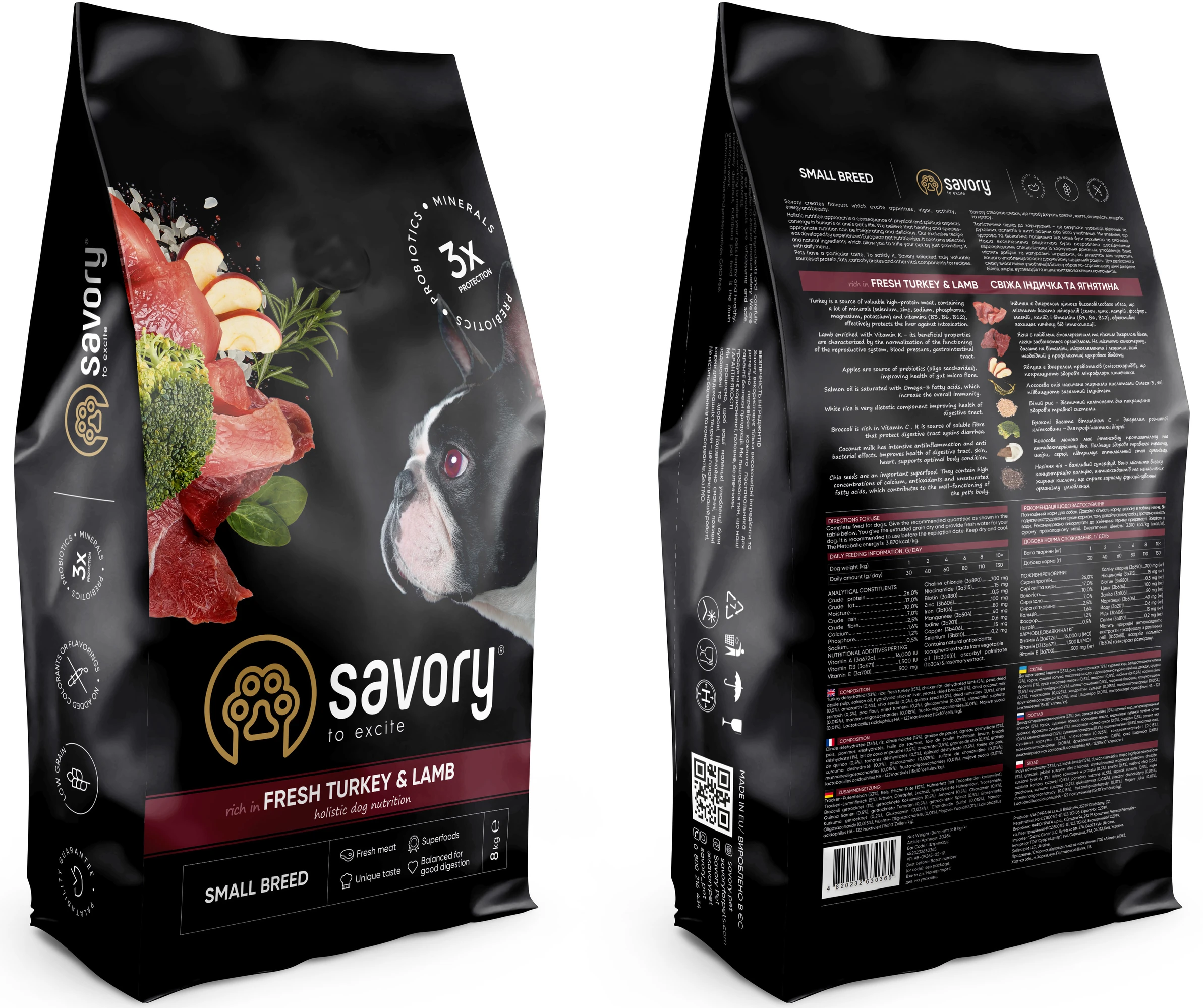 Эксклюзивная рецептура корма была разработана опытными европейскими специалистами по питанию домашних любимцев. Используя холистический подход, удалось создать биологически соответствующий, здоровый рацион для собак, который является полезным и вкусным настолько, что лапки оближешь. Сочетание отборных натуральных ингредиентов дает возможность заботиться о здоровье четвероногого, а изысканный вкус — дарить ему наслаждение от ежедневного потребления корма Savory.