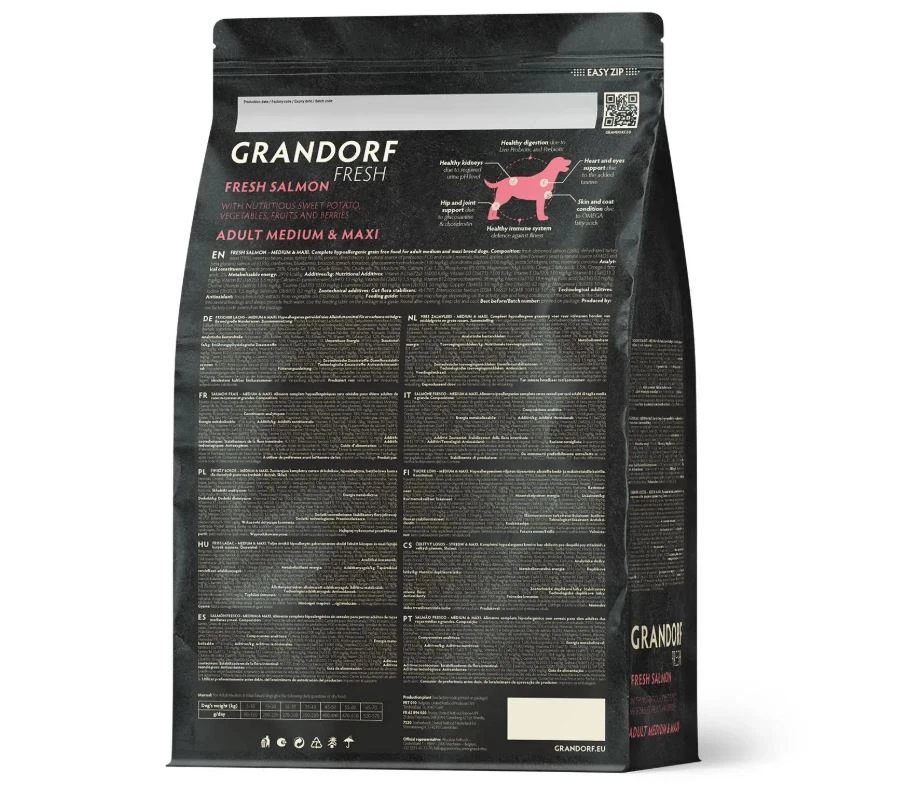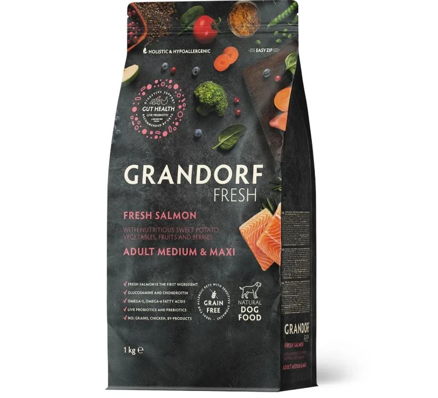 Сухой корм для средних и крупных собак Grandorf FRESH SALMON & SWEET POTATO ADULT DOG MEDIUM & MAXI с лососем 1 кг
