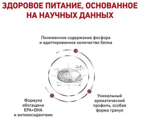 Пониженное содержание фосфора и умеренное количество белка для поддержания функции почек. Помогает повысить качество жизни кошки.