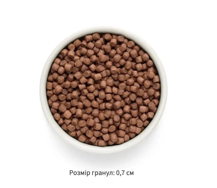 Аналитический состав: Сырой протеин 28%; Сырой жир 17%; Сырая клетчатка 3%; Сырая зола 7%; Влажность 9%; Кальций (Ca) 1,2%; Фосфор (P) 0,9%; Магний (Mg) 0,08%; Омега-3 жирные кислоты 0,7%; Омега-6 жирные кислоты 2,3%.