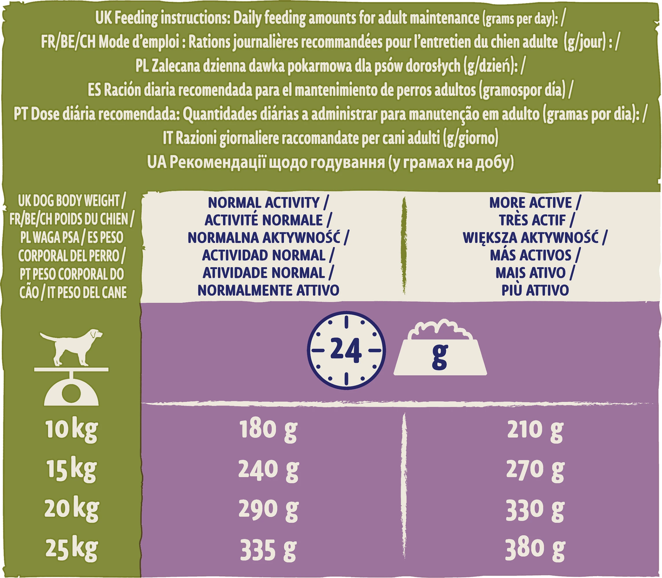 Гарантируемые показатели: белок: 25.0%; жир: 12.0%; сырая зола: 8.0%; сырая клетчатка 3.0%; Омега-3 жирные кислоты: 0.15%,