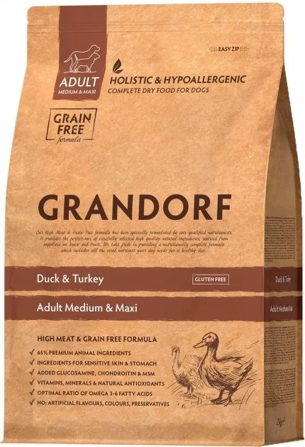Прекрасный натуральный беззерновой корм содержит в составе 65% диетического мяса утки и индейки. Содержит простые и легкоусвояемые полезные ингредиенты. Корм обладает прекрасным и натуральным вкусом без добавления искусственных ароматизаторов и богат всеми необходимыми витаминами. Сбалансированный беззерновой состав удовлетворит естественную потребность в мясном питании даже самого требовательного питомца. Тщательный отбор ингредиентов предотвращает аллергическую реакцию и пищевую непереносимость. Полезные и натуральные ингредиенты обеспечивают отличное физическое состояние и долгую здоровую жизнь Вашего питомца.
