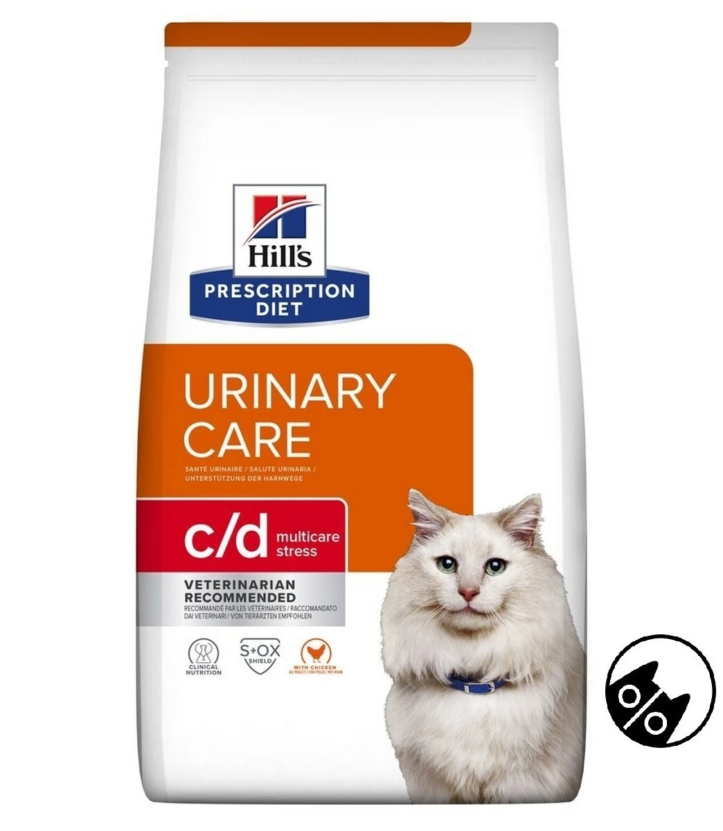 Hill's Prescription Diet c/d Feline Urinary Stress c Курицей - диетический рацион для кошек, который снижает вероятность повторного проявления признаков идиопатического цистита кошек (ИЦК), что доказано клинически и содержит ингредиенты для борьбы со стрессом - основным фактором риска ИЦК.