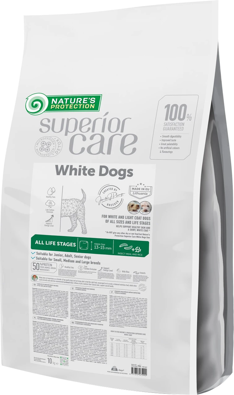 Хозяева белошерстных и светлошерстных собак нередко сталкиваются с такой проблемой, как потемнение шерсти в области глаз и на других частях тела домашнего любимца, таких как: бородка, лапки и т. д. Именно для решения данной проблемы при сотрудничестве с профессиональными заводчиками и экспертами в области питания домашних животных, а также с учетом передовых исследований и применением новейших технологий, была разработана специализированная линейка сухих кормов WHITE DOGS.