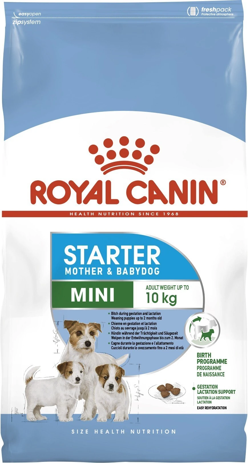 Рацион Royal Canin Starter Mother & Babydog Mini разработан для щенков собак малых размеров, вес которых во взрослом возрасте до 10 кг. Собака в период беременности и лактации, щенки от отлучения до 2 месяцев.