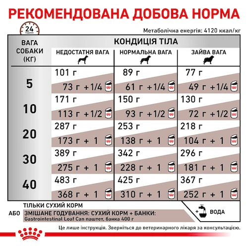 Повышенное содержание энергии соответствует энергетическим потребностям собаки, позволяет ограничить объем корма и снизить нагрузку на желудочно-кишечный тракт, также помогает восстановить вес в период выздоровления.