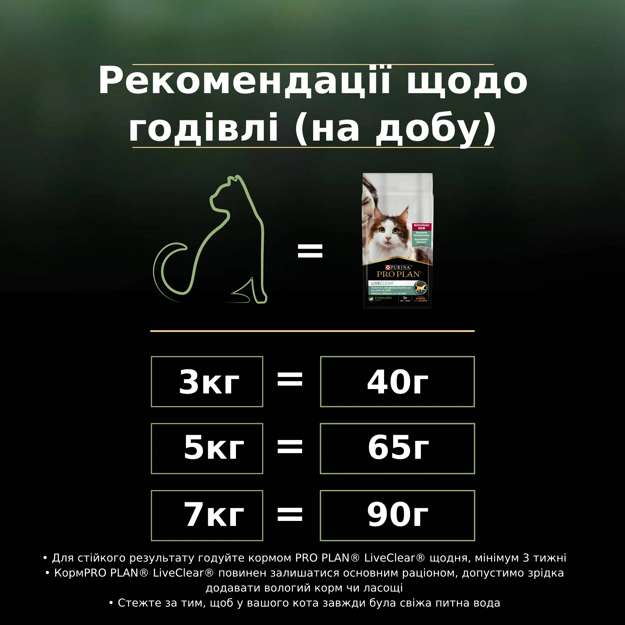 Откройте для себя Pro Plan LiveClear, революционный корм для кошек, созданный для уменьшения аллергенов на шерсти и перхоти кошек в среднем на 47%, начиная с 3-й недели непрерывного кормления. **