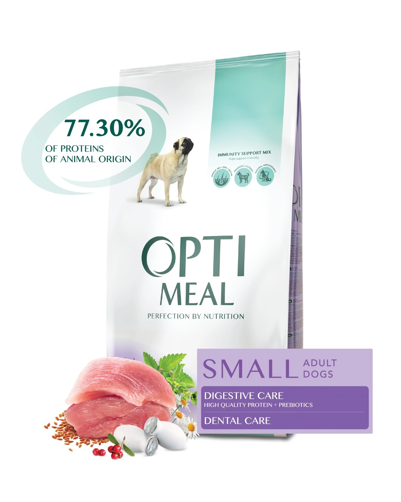 Optimeal с уткой для мелких собак – это суперпремиум формула, разработанная под контролем ветеринарных врачей за швейцарской технологией компании Swiss Pet Nutrition Group.