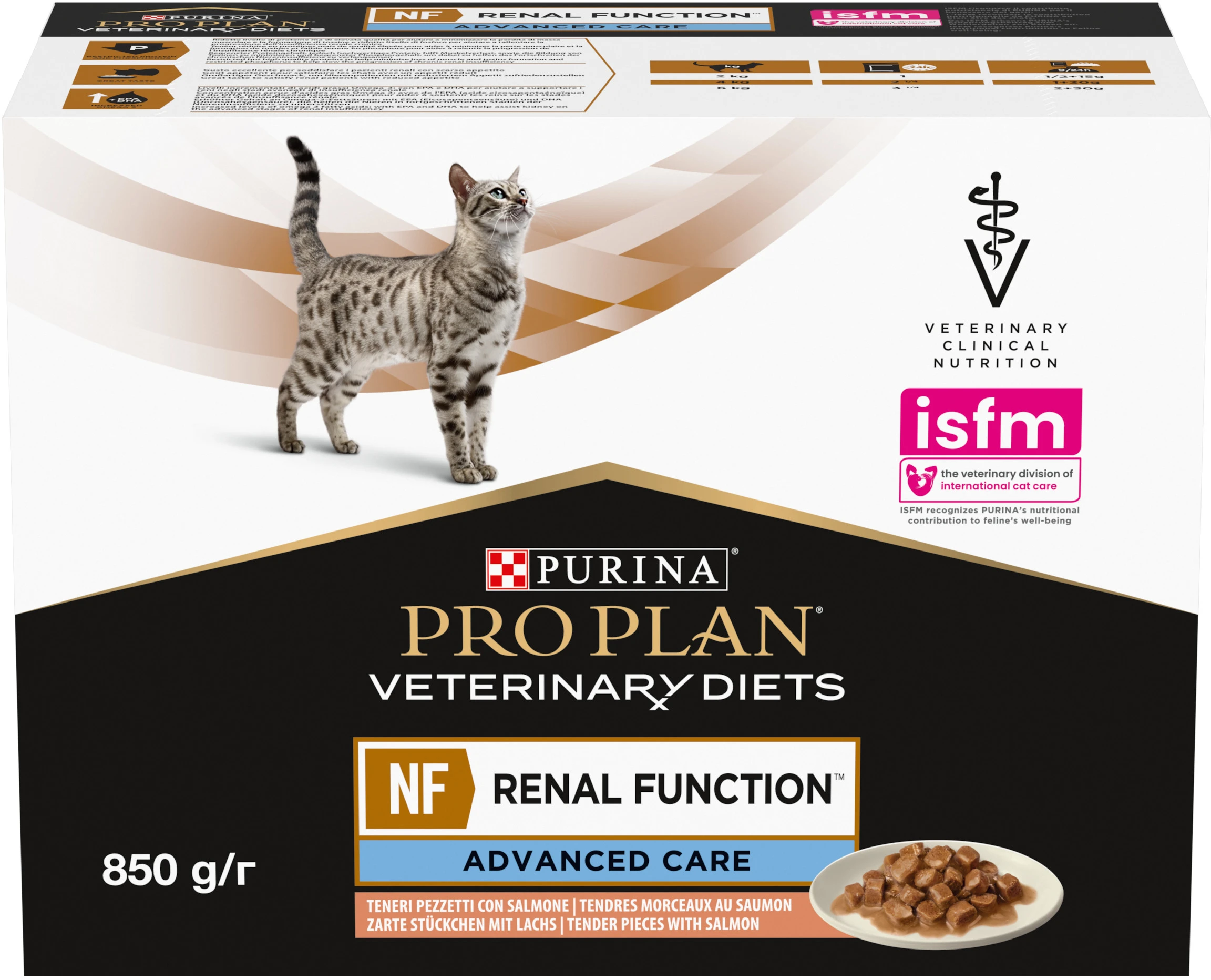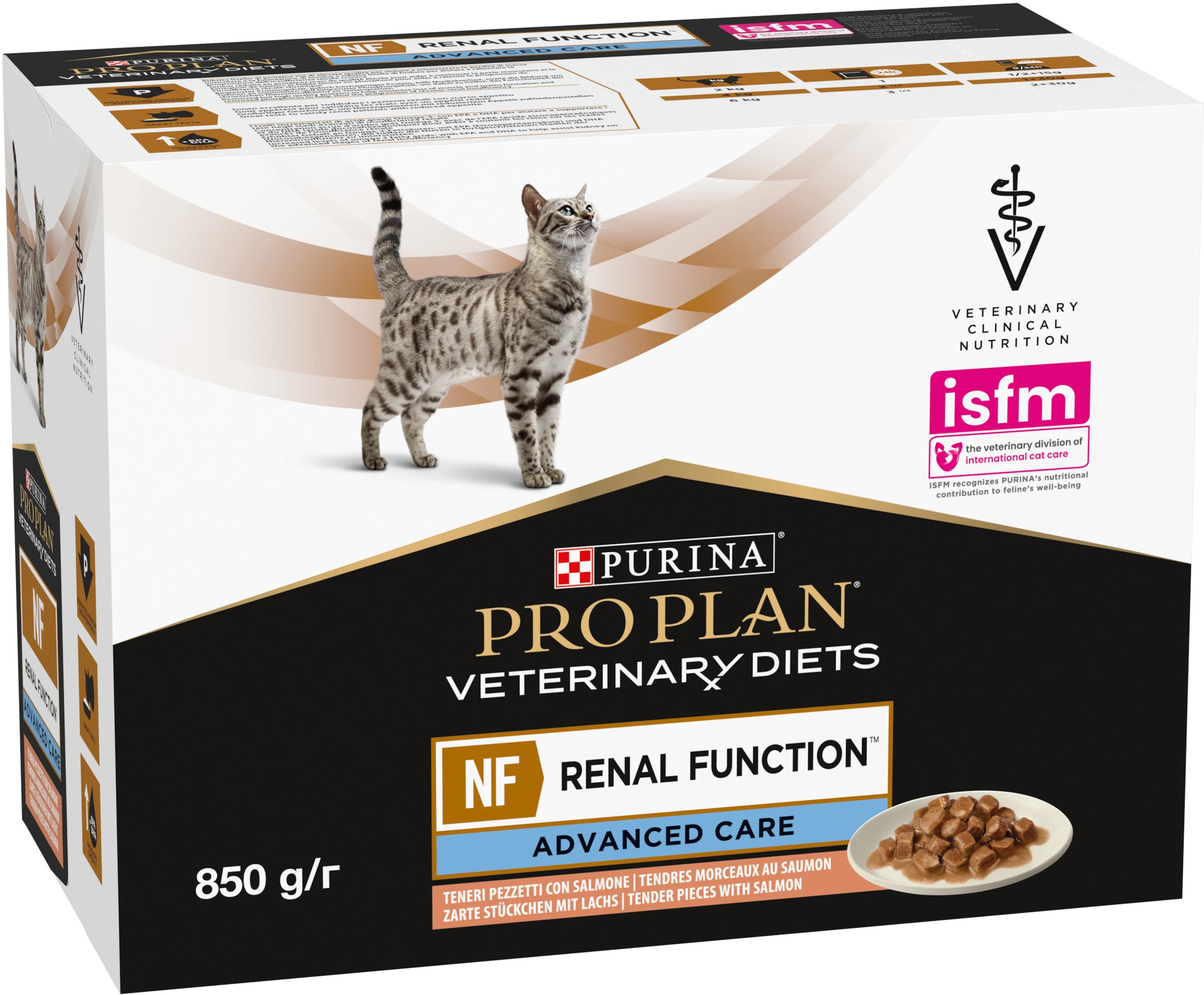 PURINA PROPLAN VETERINARY DIETS NF Renal Function Advanced Care. Ветеринарная диета НФ Ренал Фанкшн Профессиональный уход. Консервированный порционный полнорационный диетический корм для взрослых кошек для поддержания функции почек при хронической почечной болезни. С лососем.