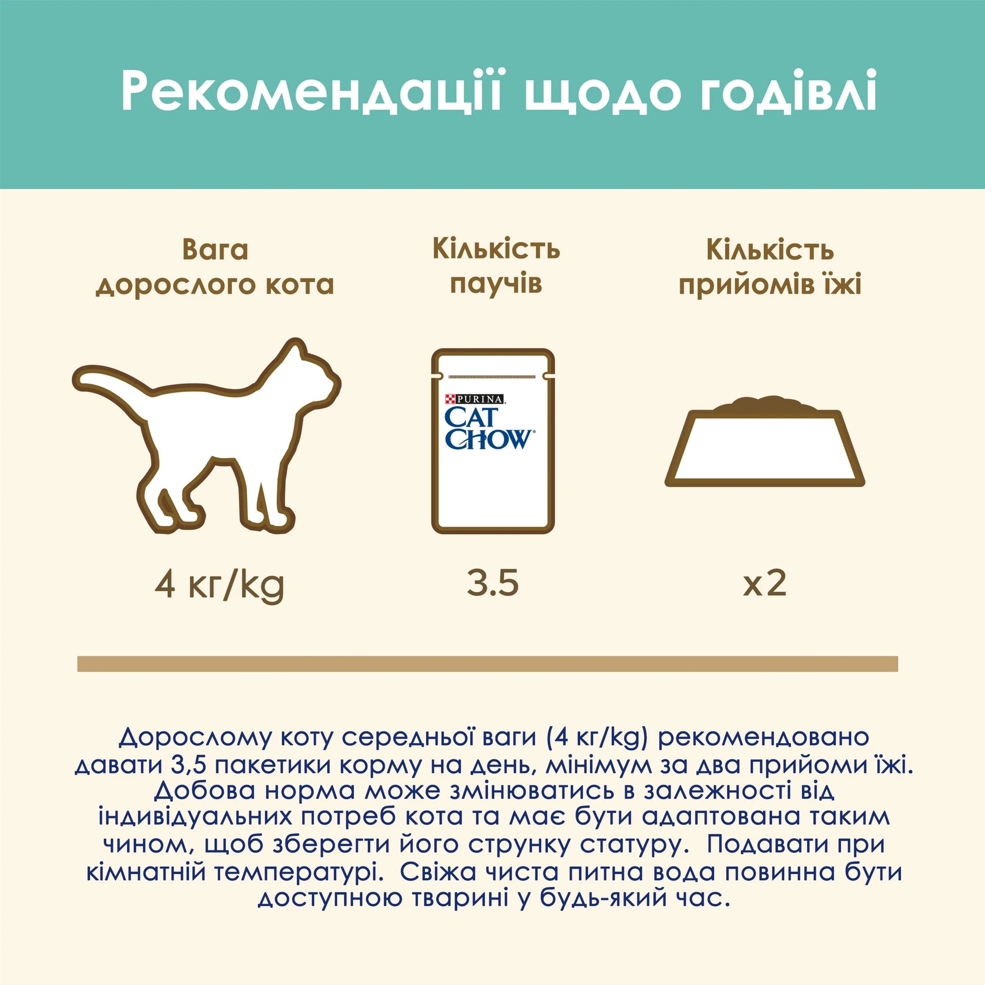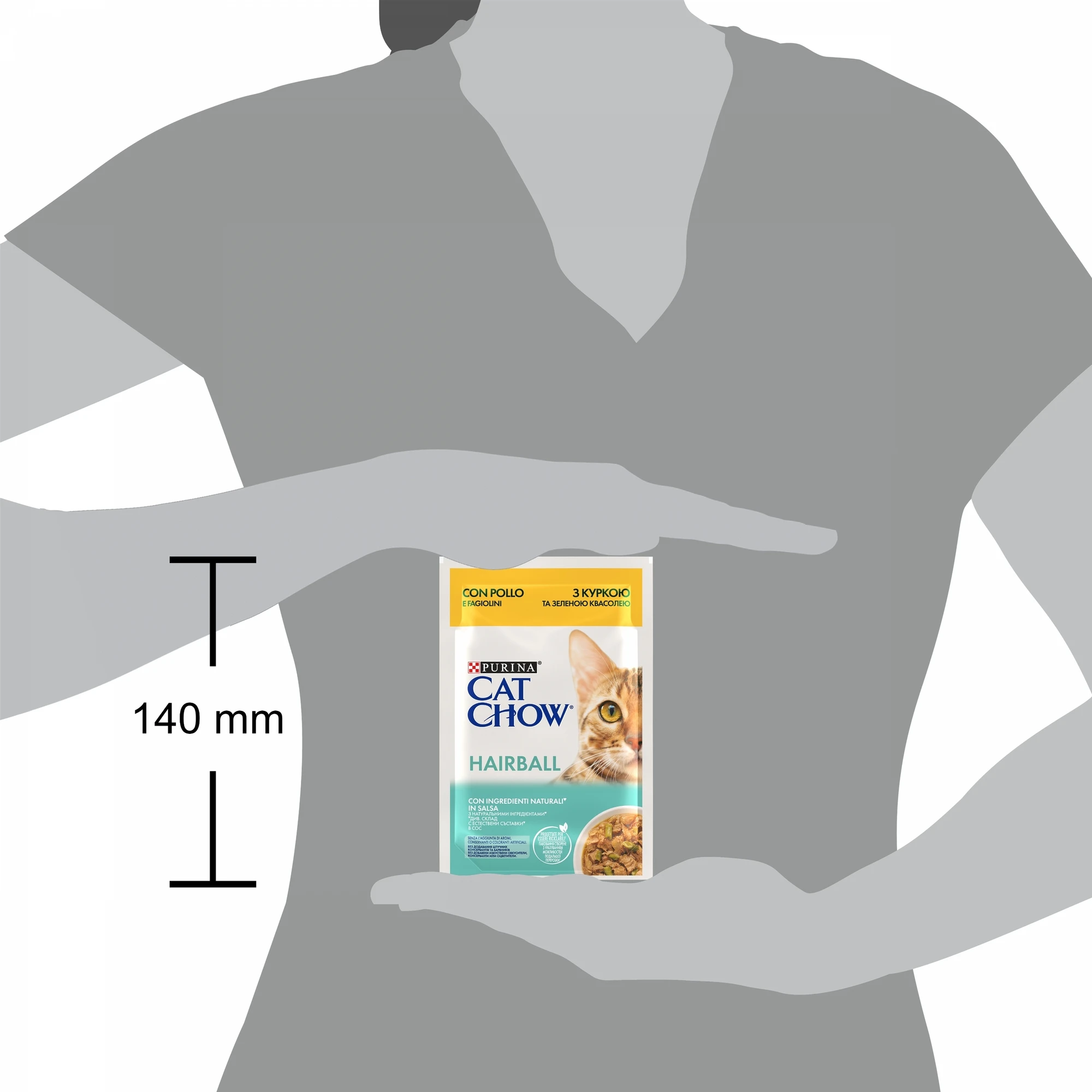 Purina Cat Chow (Кэт Чау). С курицей и зеленой фасолью. Кусочки в соусе. Консервированный порционный полнорационный корм для взрослых кошек, для уменьшения образования шариков шерсти в пищеварительном тракте.