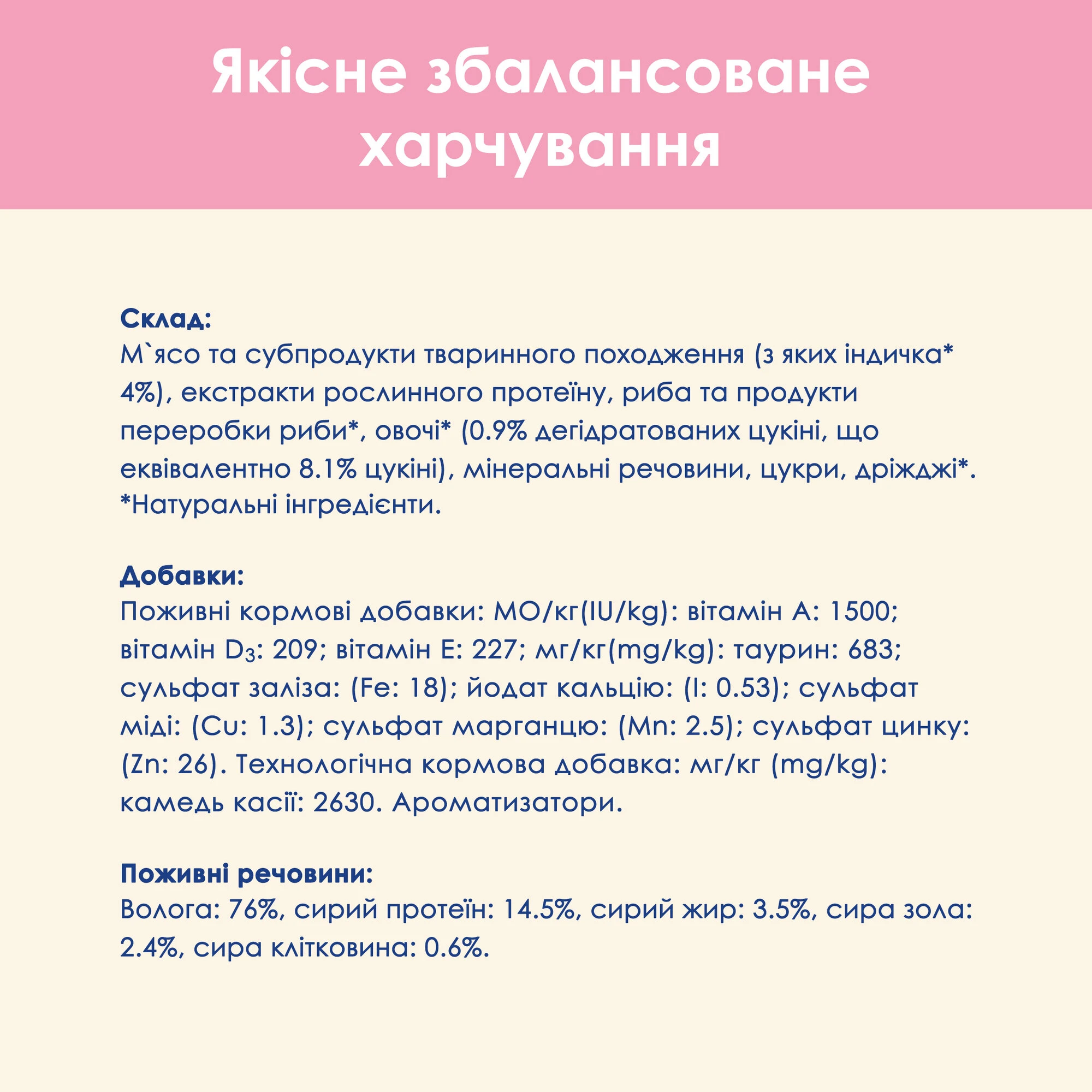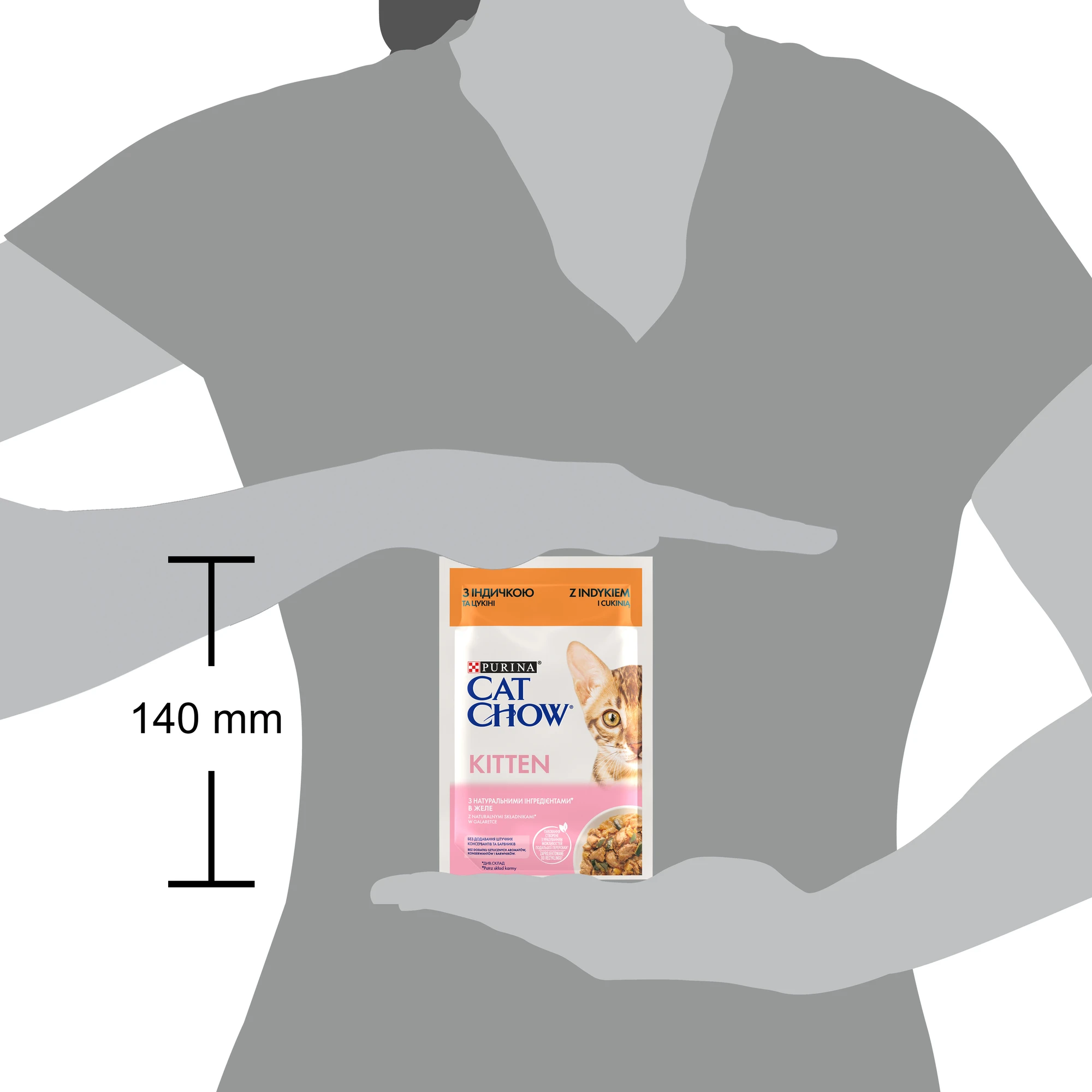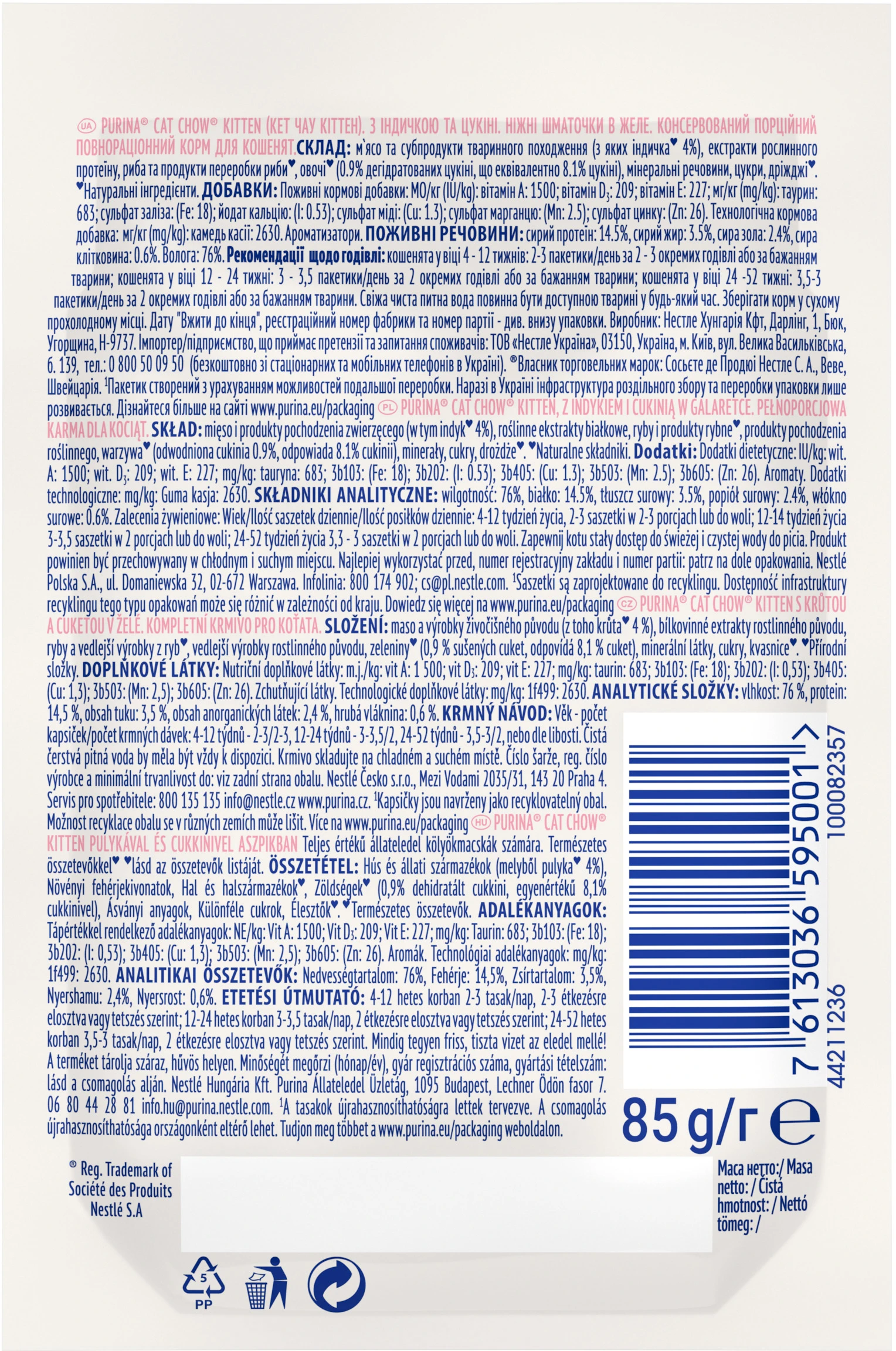 Purina CAT CHOW Kitten (Кэт Чау Киттен). С индейкой и цукини. Нежные кусочки в желе. Консервированный порционный полнорационный корм для котят. Также подходит для беременных кошек и кошек в период лактации.