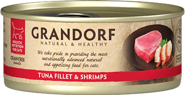 Состав: 45% филе тунца, 30% креветки, 25% собственный сок, 0% зерновых