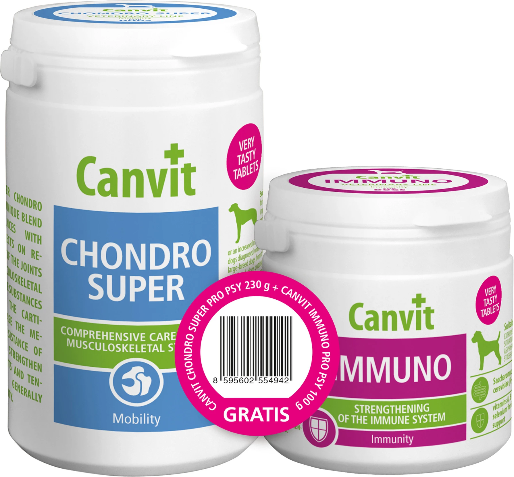 Canvit Chondro Super – это уникальная комбинация веществ, способствующая регенерации суставов и восстановлению опорно-двигательного аппарата. Укрепляет хрящи, повышает механическую прочность суставов, укрепляет связки и сухожилия, способствует улучшению подвижности. Рекомендовано при дисплазии тазобедренных суставов, остеоартрозе, собакам больших пород в период роста, в период высокой нагрузки на опорно-двигательный аппарат, пожилым собакам.