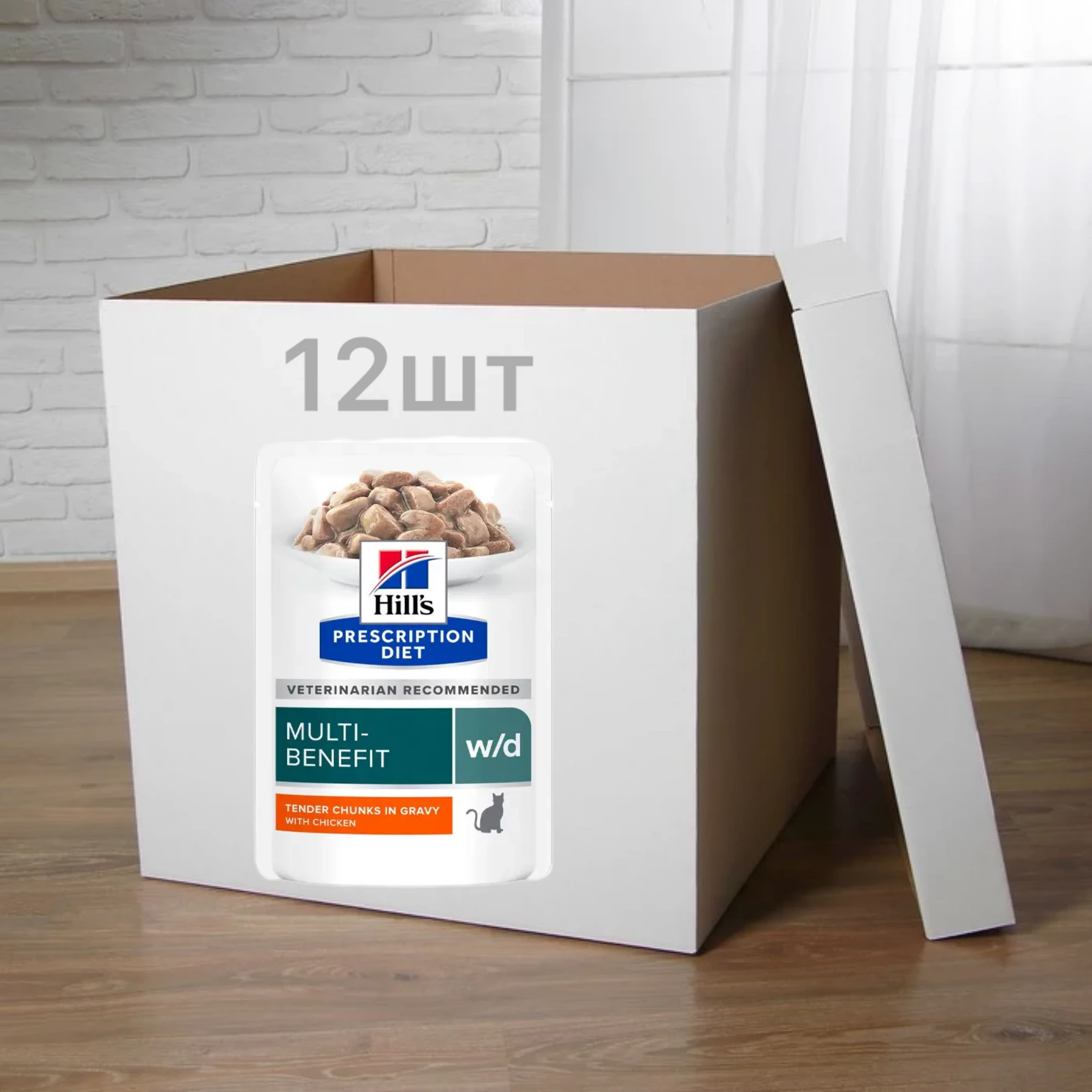 Влажный корм для кошек Hill's Prescription Diet w/d, с курицей – полнорационное диетическое питание, специально разработанное диетологами и ветеринарными врачами для стабилизации уровня глюкозы в крови, поддержание работы ЖКТ благодаря добавлению в рацион клетчатки, поддержанию оптимального веса и поддержанию здоровья мочевыделительной системы .