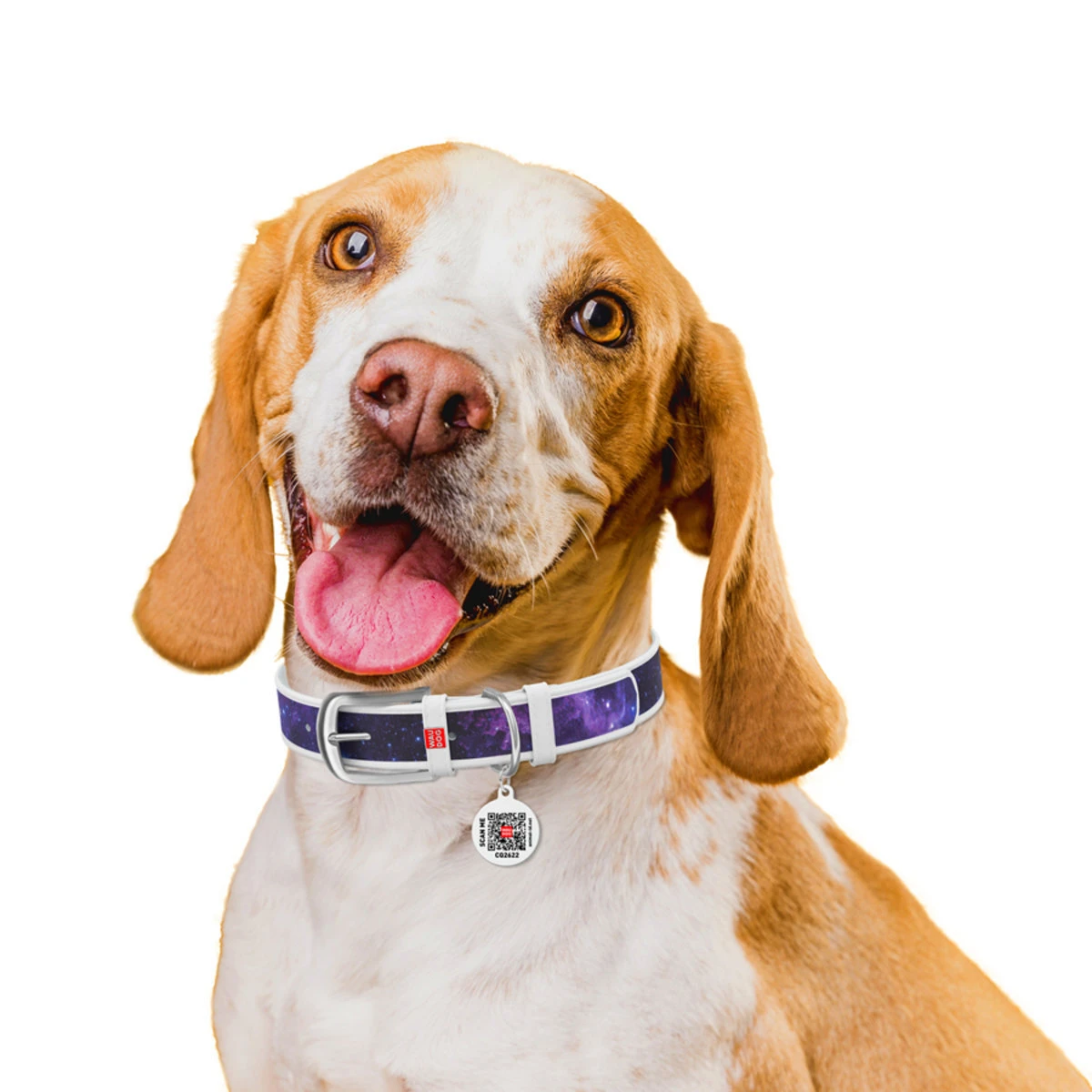 Шкіряний нашийник для собак WAUDOG Design з QR паспортом, малюнок "NASA21", XL, Ш 35 мм, Дл 46-60 см, білий