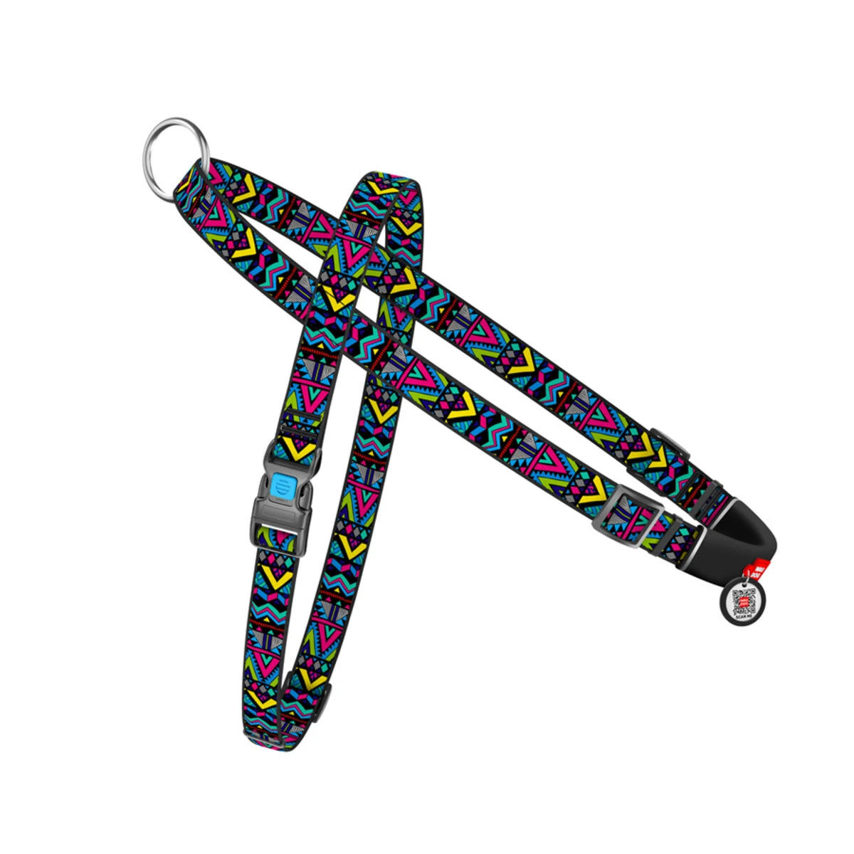 Шлея для собак швидкознімна WAUDOG Nylon з QR паспортом, малюнок "Інді", пластиковий фастекс, Ш 15 мм, А 40-55 см, В 45-60 см