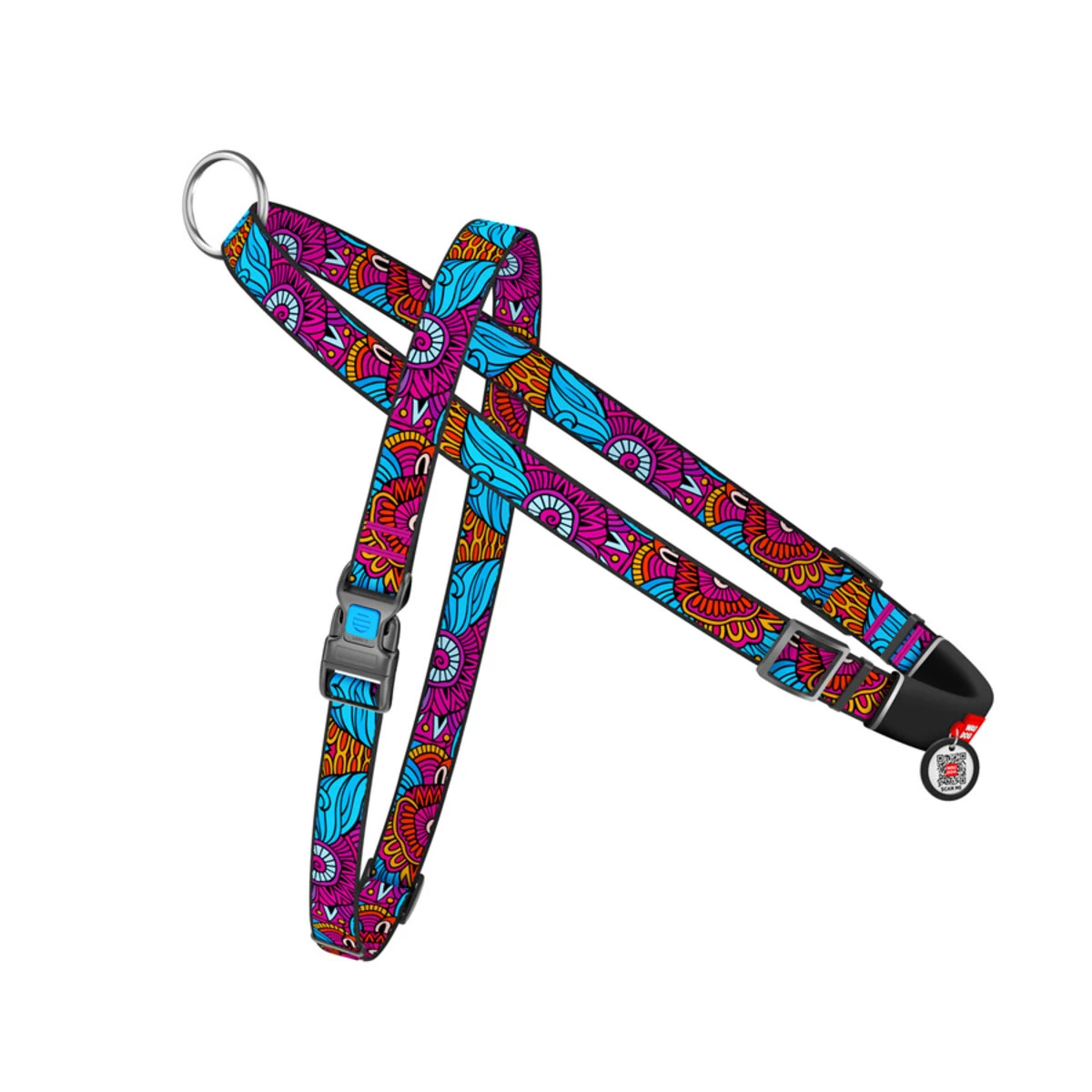 Шлея для собак швидкознімна WAUDOG Nylon з QR паспортом, малюнок "Літо", пластиковий фастекс, Ш 15 мм, А 40-55 см, В 45-60 см