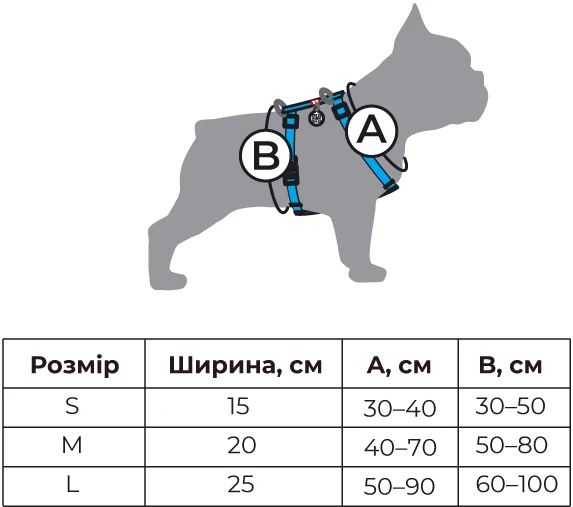 Має 2 півкільця для повідця (верхнє та нижнє), що дозволяє більш рівномірно розподілити фізичне навантаження на опорно-руховий апарат собаки.