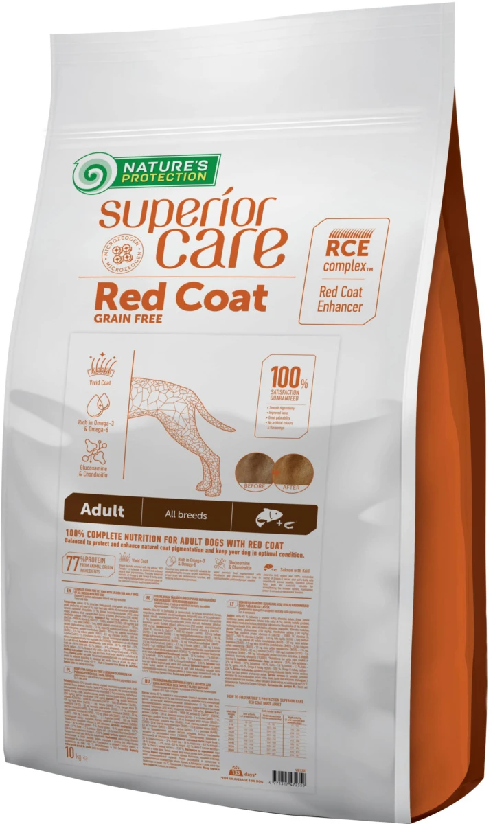 Повноцінний беззерновий корм з лососем для дорослих собак усіх порід з рудою шерстю.