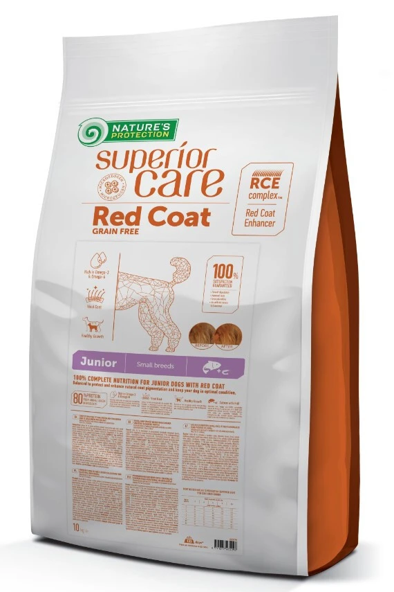 Nature's Protection Superior Care Red Coat Grain Free Salmon - це повноцінний беззерновий корм високого класу з лососем для молодих (2-12 міс) собак дрібних порід (розмір гранули 6-8мм).