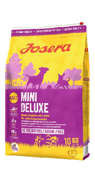 JOSERA MiniDeluxe це одночасно смачна і добре засвоювана їжа для наших маленьких бешкетників. Замість зернових він містить овочі, трави, плоди та велику кількість м'яса ягняти.