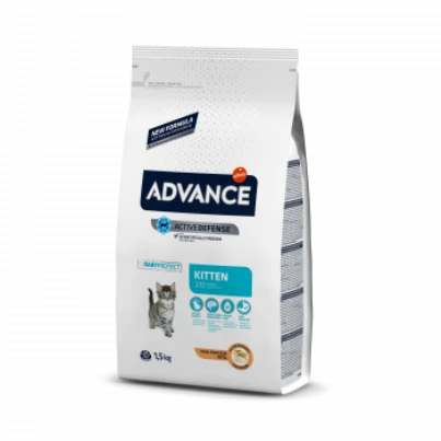Сухой корм Advance Kitten разработан для котят от 2 до 12 месяцев, а также беременных и кормящих кошек. Высокое содержание белков и жиров способствует оптимальному развитию мышечной системы, удовлетворяющей потребности котят в энергии на этапе роста. Оптимальное соотношение кальция и фосфора обеспечивает своевременное развитие костей. Содержит Омега-3 и Омега-6 жирные кислоты.