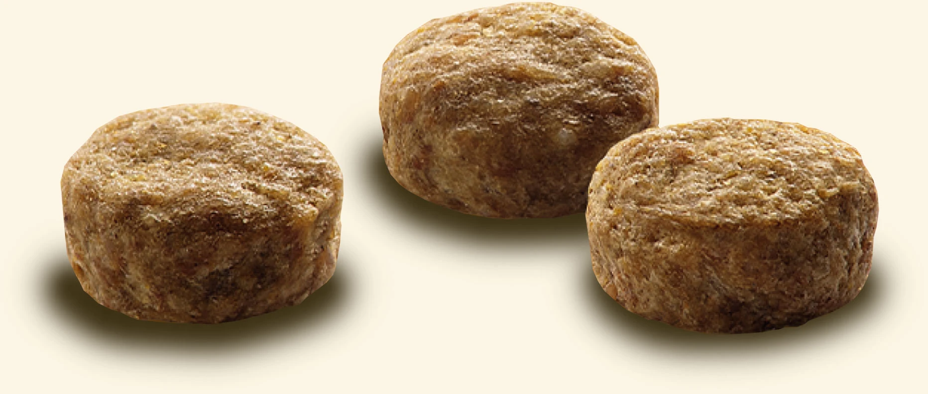 Состав: зерновые* (цельнозерновые 48%), мясо и субпродукты животного происхождения (25%, из которых 14% курицы), экстракты растительного протеина, животные жиры, продукты переработки овощей, овощи* (2% сушеного корня цикория, 0.07% сушеной моркови, что эквивалентно 0.4% моркови, 0.07% сушеного гороха, что эквивалентно 0.4% гороха), минеральные вещества, дрожжи* (0.3%).