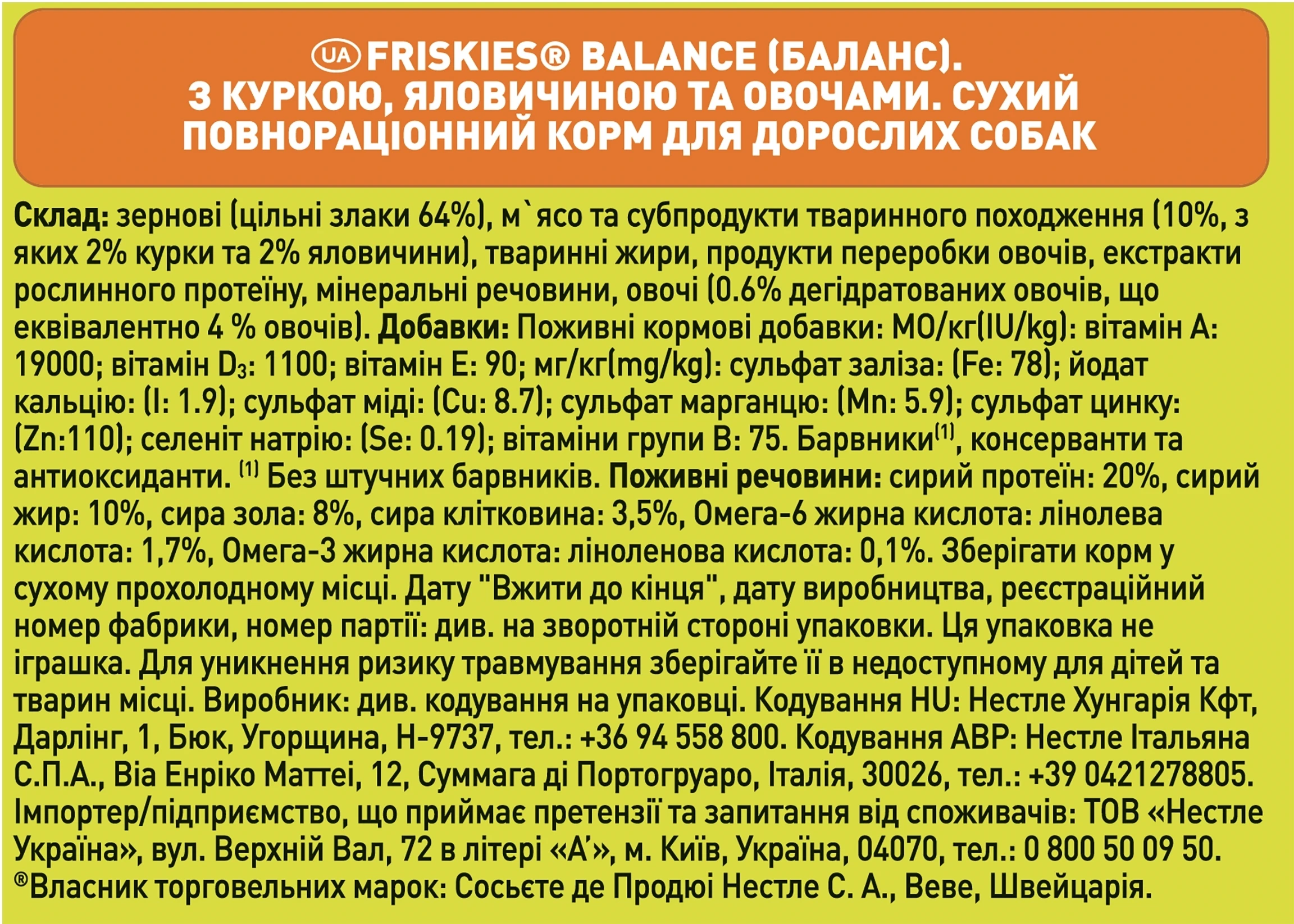 Friskies Balance (Баланс) є джерелом високоякісного білка та всіх необхідних поживних речовин, в яких потребує ваша собака, щоб жити щасливим і здоровим життям.