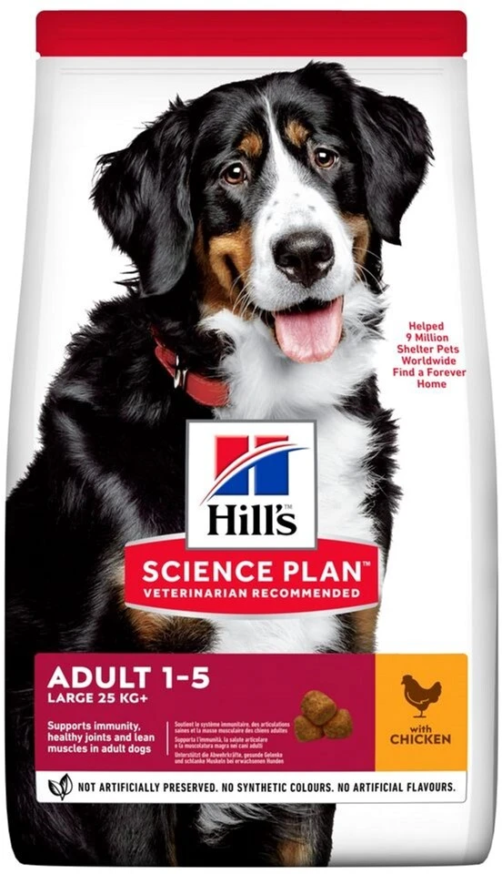 Hill's Science Plan Adult Large Breed - повнораціонне харчування для дорослих собак віком до 5 років і вагою понад 25 кг, яке профілактує захворювання суглобів і підтримує м’язову масу на належному рівні.