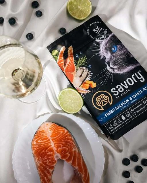 Сухий корм для котів Savory містить свіже м'ясо лосося та дегідратоване м'ясо білої риби, ягоди, фрукти та овочі. Ці компоненти створені природою, щоб забезпечити збалансоване функціонування організму котика та надати його шерсті надзвичайний вигляд.