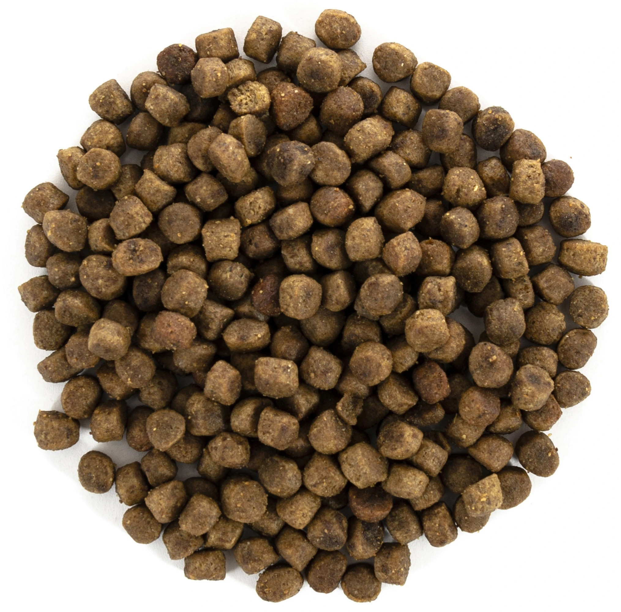 Інгредієнти: свіже куряче м'ясо (26%), жовтий горох (25%), дегідратоване куряче м'ясо (20%), сушені яблука (8%), гарбуз (6%), курячий жир (консервований токоферолами, 4%), лососеве масло (2%), псиліум - м'якоть і насіння (2%), гідролізована куряча печінка (2%), пивні дріжджі (2%), насіння льону (1%), сушений пустирник (0,5%), сушена ромашка (0,5%), мінерали, сушена обліпиха (0,3%), сушена журавлина (0,2%), фруктолігосахариди (0,015 %), маннанолігосахариди (0,015%), юкка Шидигера (0,008%), бактерії Lactobacillus acidophilus HA - 122 інактивовані (15х109 клітин/кг). Добавки: вітамін A 20 000 МЕ, вітамін D3, 800 МЕ, вітамін E 600 мг, вітамін C 300 мг, таурин 2500 мг, L-карнітин 50 мг, холін хлорид 2500 мг, біотин 2 мг, вітамін B1 10 мг, вітамін B2 12 мг, ніацинамід 50 мг, D-пантотенат кальцію 40 мг, вітамін B6 10 мг, фолієва кислота 2 мг, вітамін B12 0,04 мг, цинк 120 мг, залізо 45 мг, марганець 55 мг, йодид калію 4 мг, мідь 10 мг, селен 0,2 мг, L-метіонін 2000 мг.