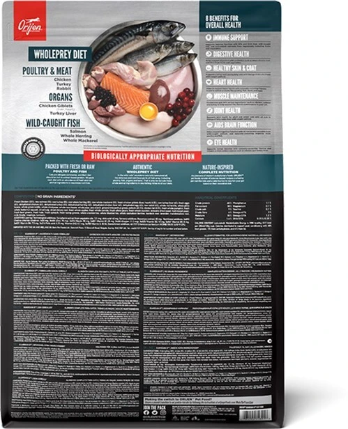 - Високопоживне співвідношення інгредієнтів WholePrey, включаючи м'ясо, органи та хрящі в поєднанні з цільною рибою та цільними гніздовими яйцями, є природним джерелом практично всіх поживних компонентів, необхідних котам. З гордістю приготований у Канаді з найкращих світових інгредієнтів!