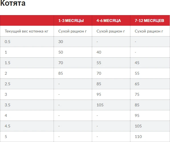 Кошенят після відлучення від матері до 1 року та вагітних або годуючих кішок.