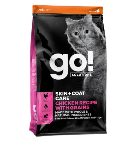 Цей смачний продукт Go!, створений з високоякісної курки, вирощеної в клітках, та цільнозернових продуктів. Рецепт Solutions Skin + Coat Care багатий омега-олиями, які допомагають контролювати линьку та зміцнюють здоров'я шкіри і шерсті, а антиоксиданти з фруктів і овочів підтримують імунну функцію.