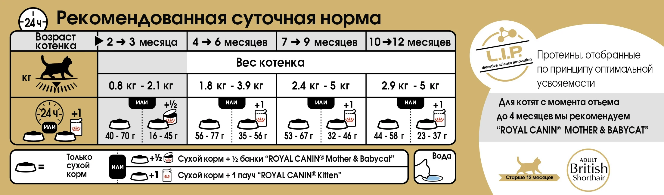Для Британських короткошерстих кошенят від 4 до 12 місяців.