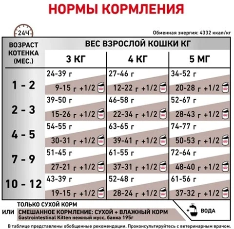 Рекомендується для кошенят з моменту відлучення до досягнення дорослого віку (а також для котів у період вагітності/лактації)