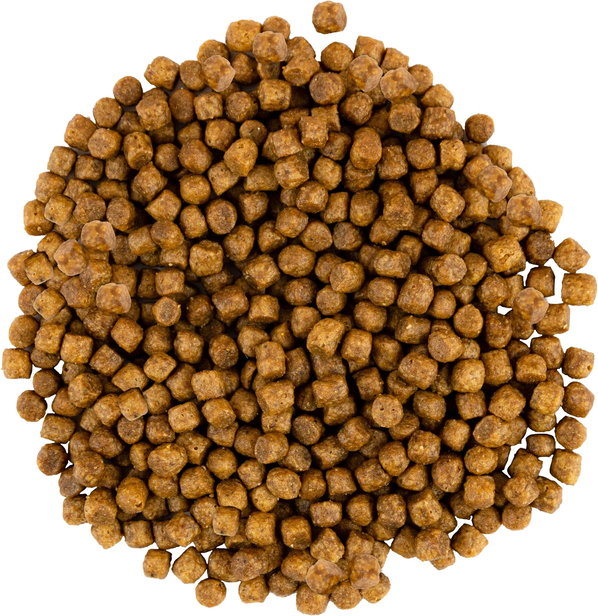 • Свіже м'ясо індички та дегідратоване м'ясо курки — цінне джерело білків, які легко засвоюються і надають корму неперевершений смак.