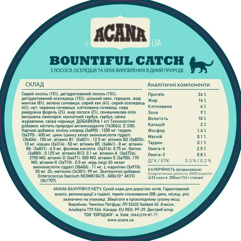 Годуйте вашу мініатюрну дику кішку інгредієнтами з цільної риби. Новий раціон АКАНА Баунтифул Кетч переповнений якісними інгредієнтами з цільної риби, включаючи лосося та оселедця, виловлених у дикій природі, та райдужну форель. Уся риба представлена в співвідношенні WholePrey, включаючи м'ясо риби, внутрішні органи та кістки, щоб ваша кішка отримувала всі необхідні їй інгредієнти природно.