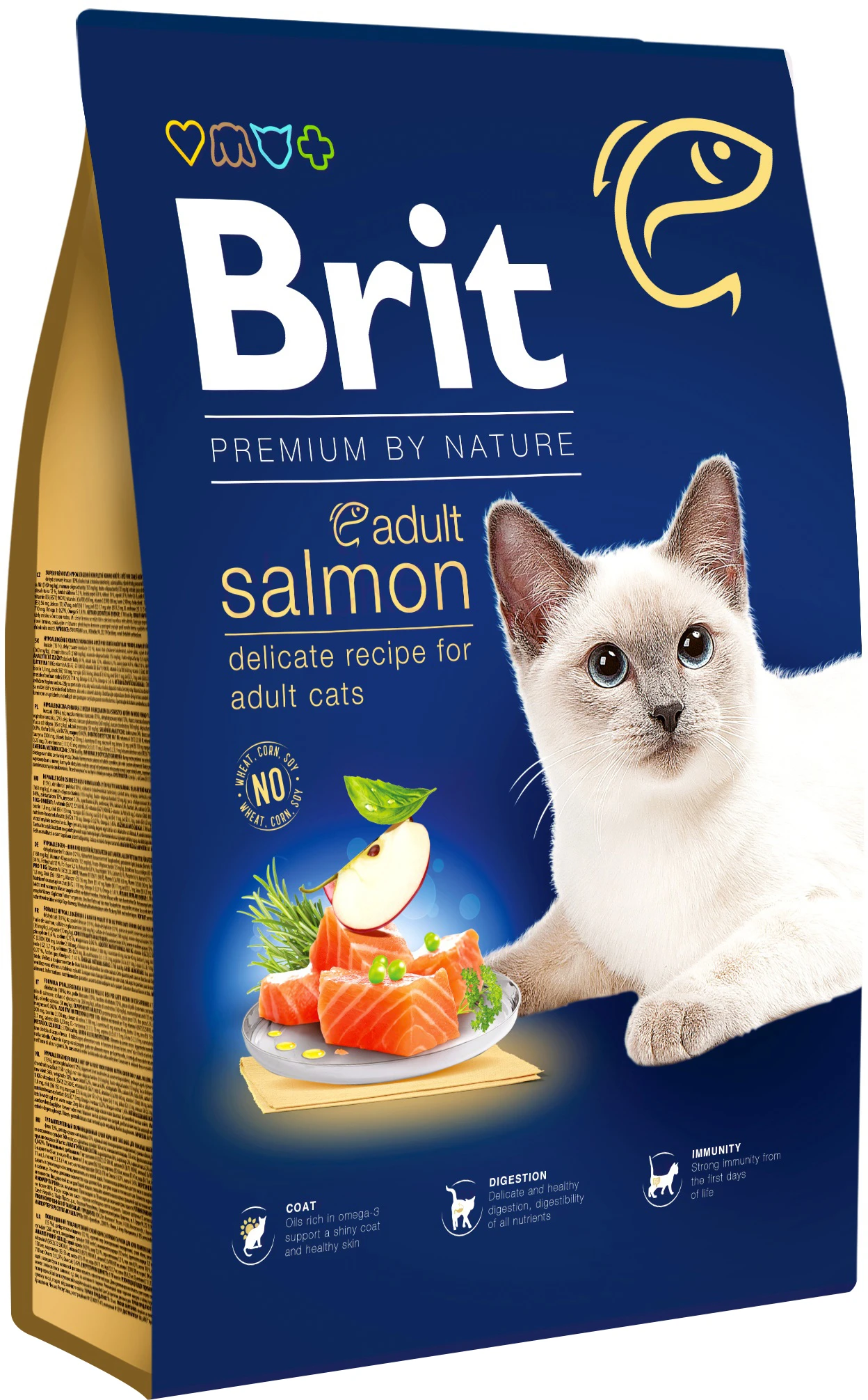 Повноцінний корм преміум-класу для котів. Смачний та апетитний корм з лососем та натуральними цінними інгредієнтами для щоденного здорового харчування вашого улюбленця.