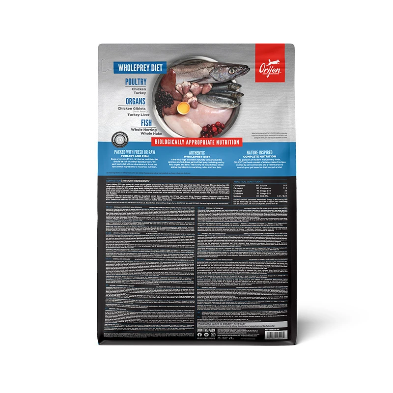 Допоможіть вашій собаці процвітати завдяки силі високопротеїнової рецептури, що забезпечує харчування найвищого рівня. Собаки – від природи м'ясоїдні, тому вони потребують біологічно відповідних раціонів, багатих різноманітними видами цільних м'ясних інгредієнтів. Раціон ОРИДЖЕН Ориджинал на 85% складається з якісних м'ясних інгредієнтів, таких як курки та індички, вирощених на вільному вигулі, а також риби, виловленої в дикій природі або екологічно вирощеної на фермах. Раціон, наповнений м'ясними інгредієнтами у співвідношенні WholePrey, такими як високоцінні органи та їстівні кістки, раціон ОРИДЖЕН виготовлений з найбільш поживних і соковитих частин здобичі, щоб забезпечити собак харчуванням, в якому вони потребують. Як результат, раціон для вашого улюбленця поза будь-яким порівнянням.