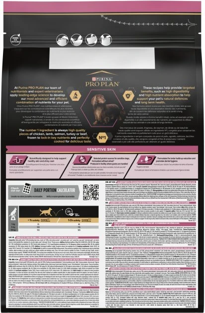 Деякі собаки страждають від проблеми чутливої шкіри. Такі тварини, не маючи жодних інших проблем зі здоров'ям, чешуться значно частіше, ніж інші собаки, і рівень лупи у них також значно вищий, ніж у собак з нечутливою шкірою. Розроблений нашими ветеринарами та дієтологами сухий корм для собак PRO PLAN Sensitive Skin забезпечує досконале харчування, що підтримує здоров'я шкіри собак.