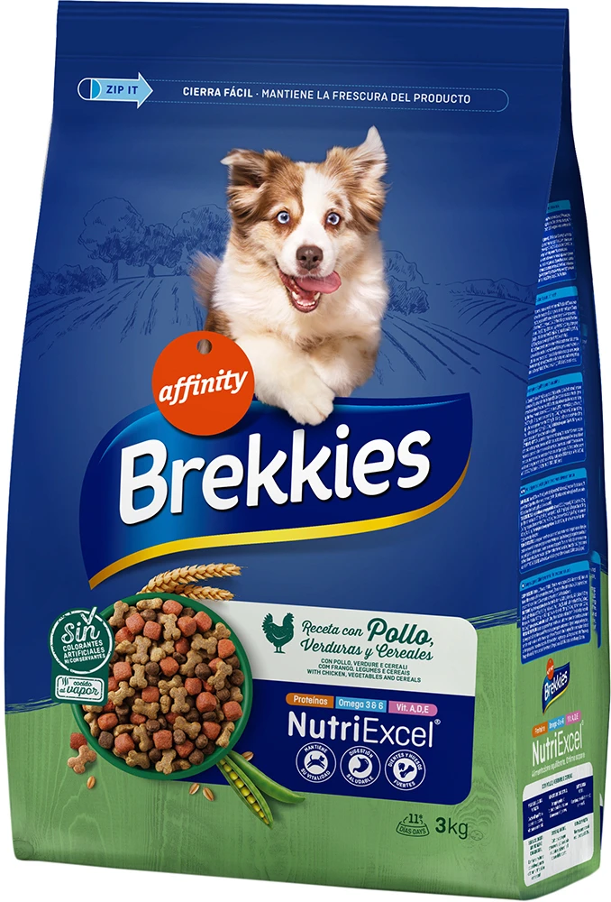 Brekkies Dog Chicken — повнораціонний корм, виготовлений з використанням поживних компонентів, які необхідні дорослій собаці, щоб вона перебувала в відмінній формі.