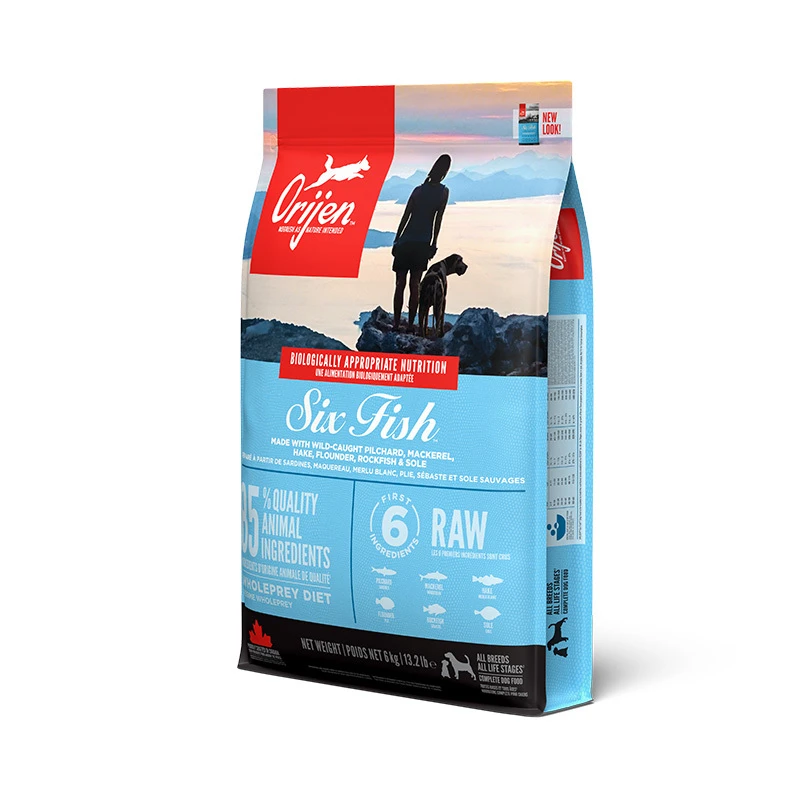 Високопротеїновий (38%), з обмеженою кількістю вуглеводів (18%), ORIJEN SIX FISH забезпечує харчування всіх собак на всіх стадіях життя, відповідно до їх еволюційних і біологічних потреб.