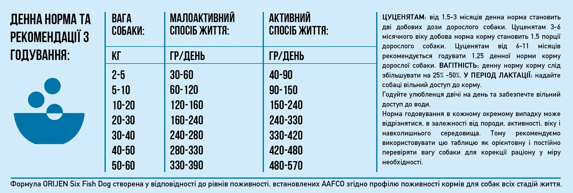 Ось чому ми рекомендуємо використовувати цю таблицю як орієнтовну і постійно перевіряти вагу собаки для корекції раціону за необхідності. Годуйте собаку 2 рази на добу і забезпечте їй постійний доступ до свіжої питної води.