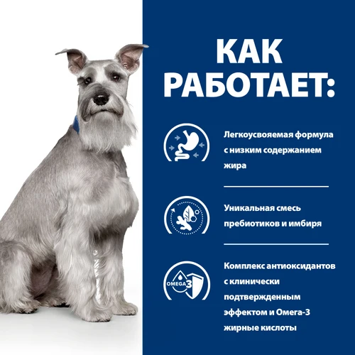 Дієтичний корм для собак Hill's Prescription Diet i/d Low Fat містить все необхідне для харчування вашої собаки і може використовуватися тривалий час. Харчування зі зниженим вмістом жиру допомагає контролювати розлади травлення і живить мікробіом кишечника. Будь ласка, проконсультуйтеся з ветеринарним спеціалістом для отримання додаткової інформації про те, як корми Hill's Prescription Diet можуть допомогти вашій собаці вести щасливе і активне життя.