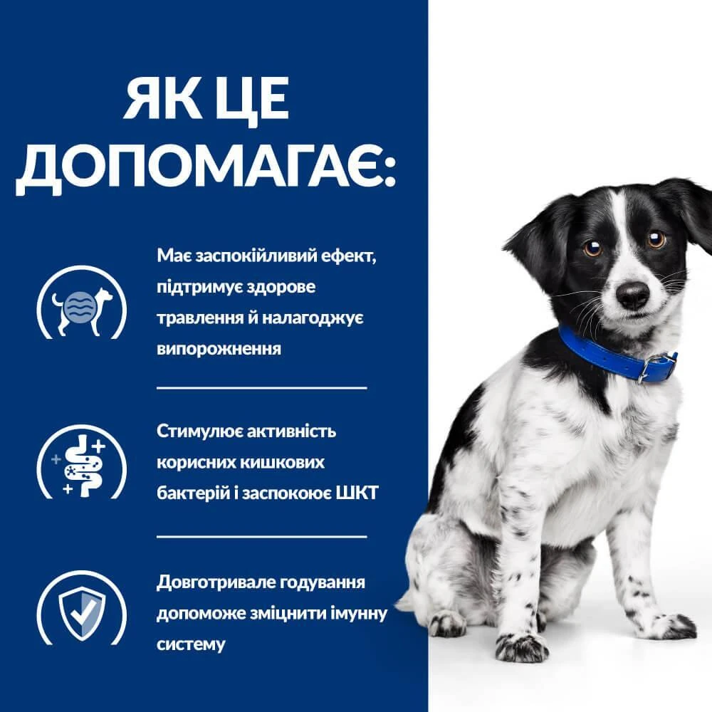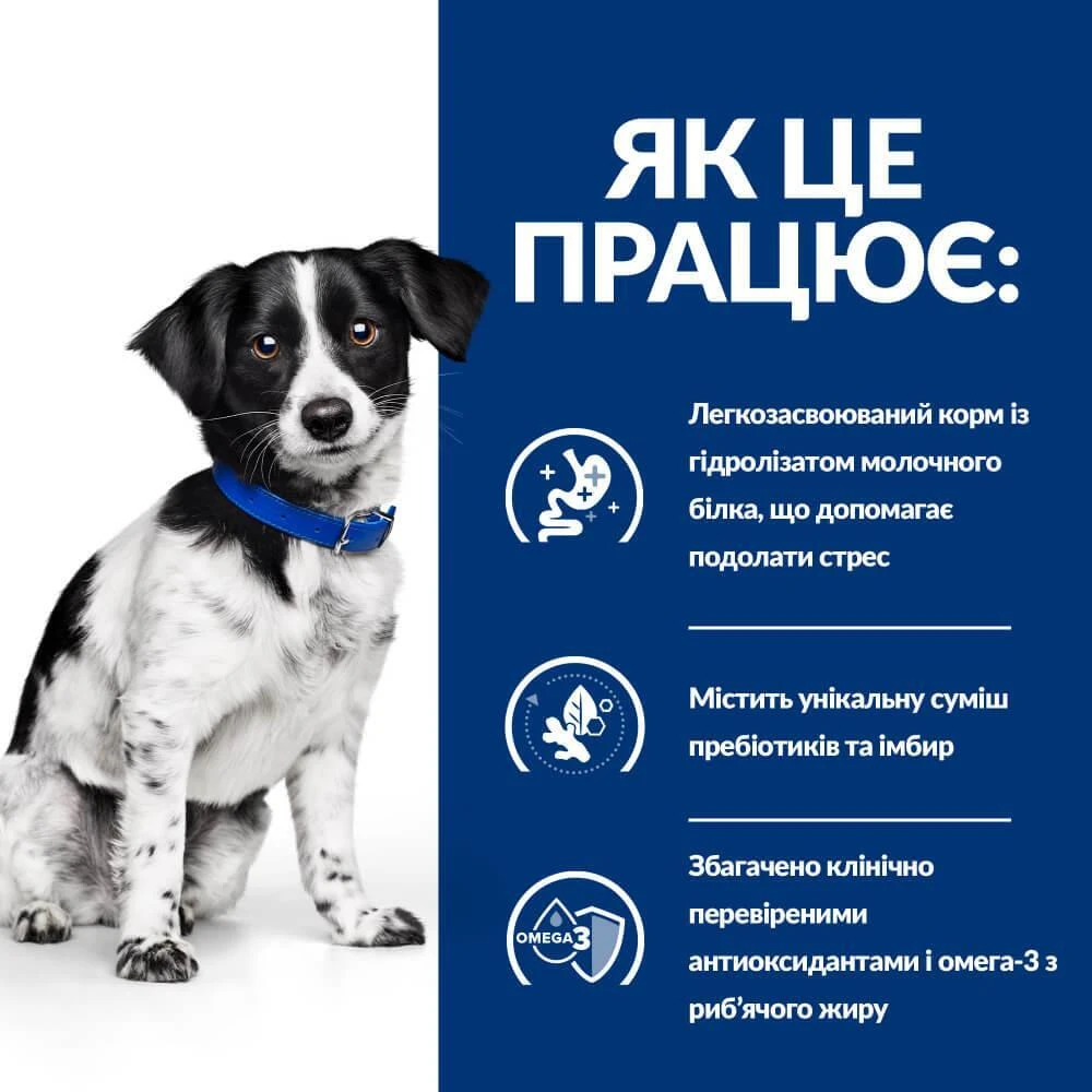 Сухий корм для собак Hill's Prescription Diet i/d Stress Mini – повнораціонна дієта для дорослих собак мініатюрних порід, рекомендована для зменшення проявів розладів шлунково-кишкового тракту та покращення всмоктування поживних речовин при порушенні травлення, при екзокринній недостатності підшлункової залози та стані харчування з пониженим вмістом жиру. Раціон містить легкозасвоювані інгредієнти, підвищені рівні натрію та калію, трипсин-гідролізований казеїн великої рогатої худоби. Збагачений технологією ActivBiome+ від Hill's – запатентованою сумішшю прбіотиків, яка має клінічно доведену здатність живити мікробіом для здорового травлення та добробуту. Завдяки вмісту високоякісних інгредієнтів та відмінному смаку тварини з задоволенням поїдають цей корм, а їхнім власникам легше дотримуватись вказівок лікаря.